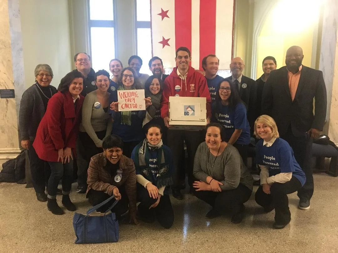In the nearly two decades since our founding, DC for Democracy has been part of more than 100 different campaigns. In addition to endorsing dozens of candidates over the years, we helped create and win DC’s groundbreaking Fair Elections public campaign finance program. We helped fight for Paid Family Leave, which positions DC as a leader in the nation on guaranteed time off, as well as the $15 minimum wage. We campaigned for Initiative 77 and later, its successor Initiative 82. We advocated for the Local Residents Voting Rights Act to make sure every resident of DC has a say in our local government.